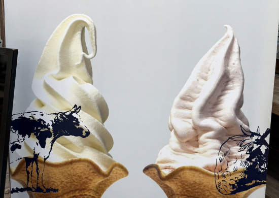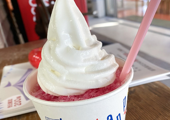 星の郷青空市産直プラザにて餅やごはんや饅頭、ソフトクリームやかき氷を販売しています。